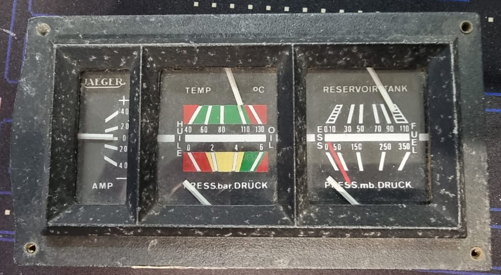 This is where I realise how dodgy older gauges can be. I notice issues: its not linear, if you leave it on for 20 mins and let it soak (it generates a watt or so of heat) it drifts by 5% or so in the upward direction. Thats probably because the coil opposing the reading heats up, increasing its resistance and reducing the current and thus magnetic field. It changes by about 8% over 12V to 15V range for a fixed sender value. I always suspected that when the battery is low the fuel gauge reads a bit lower – it actually does. Finally, there is a bit of stiction in the movement; moving up to or down to the same value doesn’t always give you the same reading; but this doesn’t matter because the engine vibration sees to it that it doesn’t stick. For a 50 year old meter a value within 5% isn’t bad. I tested all the other gauges, they require different biases because the senders are all different but they all work work.