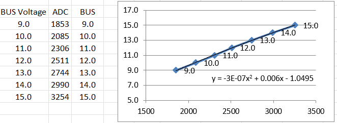 Now, can we use those figures to build our fuel gauge? The answer is no. Because the actual voltage (ADC reading) changes with system voltage. The mechanical gauge compensates for this because the current flowing through the coil is proportional to system voltage. But we need to compensate for it.