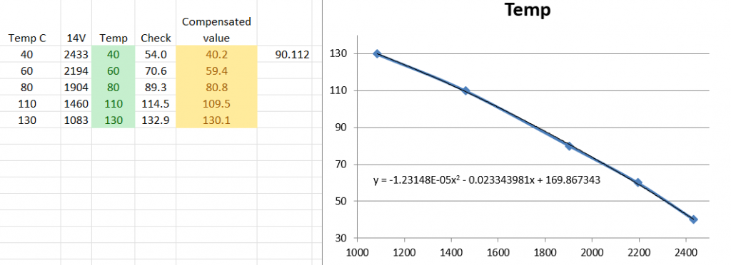 Here we can see the 14V values and then the transfer function. We then use the raw values through the inverse transfer function so cross-check our work and the values are reasonable, any deviation would be impossible to see on the actual gauge.